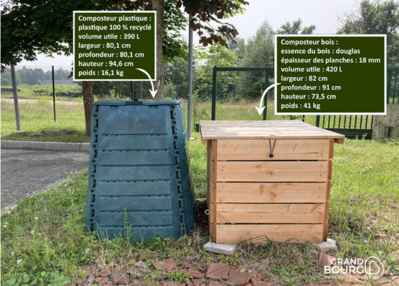 Grand Bourg Agglomération vous propose d’obtenir un composteur, en bois ou en plastique, d’environ 400 L, contre la participation financière de 25 €. Un justificatif de domicile vous sera demandé. Le paiement se fera auprès de la Trésorerie Municipale de Bourg-en-Bresse après réception de la facture.